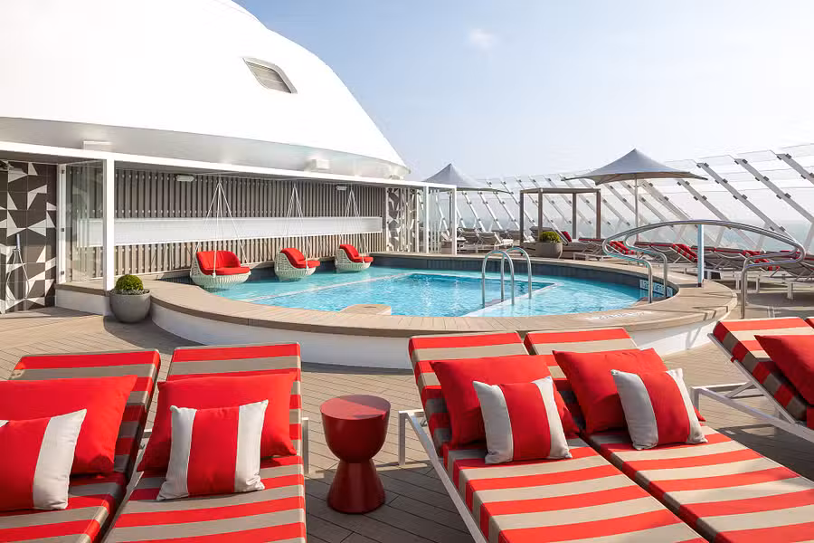 Your luxurious outdoor sanctuary features a spacious lounge area and plush, stylish furniture. With an inviting pool on Celebrity Edge ships and a relaxing hot tub or water feature on select ships, this outdoor area rivals any high-end resort. At The Retreat Sundeck, your Retreat Attendants will help with towels, beverages, snacks - whatever you need to completely enjoy this incredible space.
