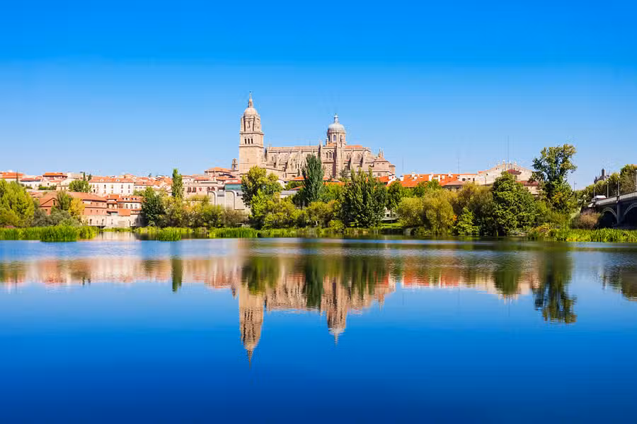 Salamanca, in northwestern Spain, is the capital of Salamanca province, part of the Castile and León region. With a history dating back to the Celtic era, it’s known for its ornate sandstone architecture and for the Universidad de Salamanca. Founded in the 1100s and a key intellectual center in the 15th-16th centuries, the university continues to add to the city’s vibrancy with its international student population.