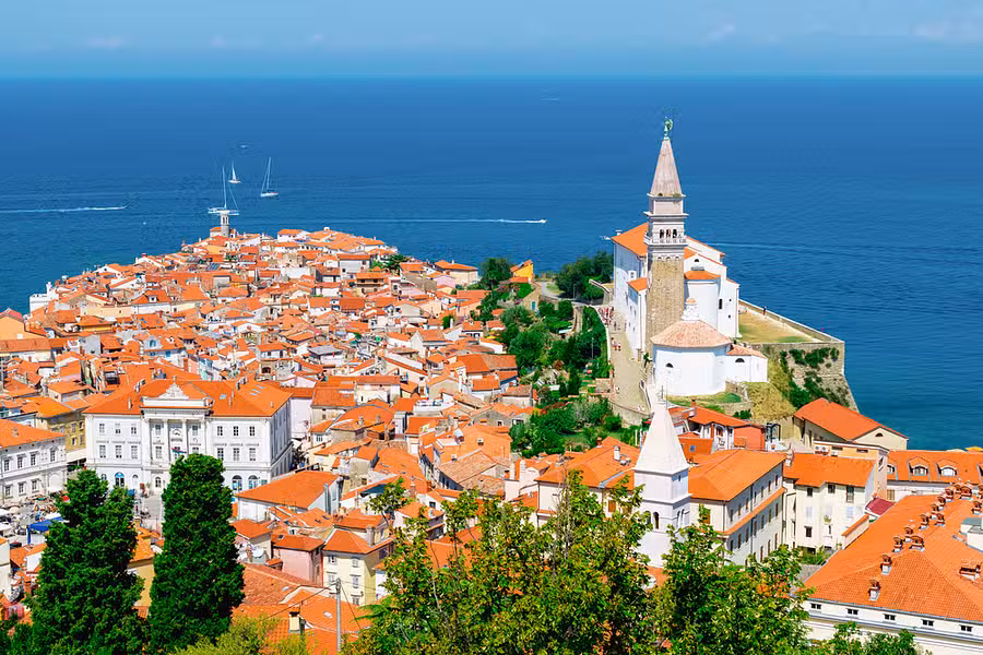 Originally built on an island surrounded by swampland that was later drained, Koper was known as "Goat's Island" when it was under Venetian rule. Today the once fortified Old Town of Venetian-influenced Koper has retained much of its grand architecture from the 15th to 18th centuries. The Praetor's Palace, a blend of Gothic and Renaissance styles, proudly rises above the gray limestone main square. Nearby the Postojna Caves are the most popular underground attraction in Europe, and the Predjama Castle was carved out of a limestone cliff.