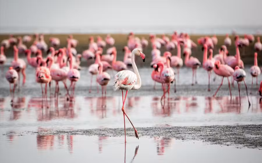 Unspoiled Walvis Bay, a natural lagoon and the only deep-sea harbor on the Namibian coast, offers something for everyone, with spectacular bird-watching being a keynote, as thousands of migrating species make their way here annually to join the local flamingoes and pelicans. “Dune 7,” at the outskirts of town, towers over the scenic bay, and offers excellent photo ops. The city is also a good starting point for a number of exciting day trips into the timeless beauty of the desert region, including off-road explorations, or fly-over dolphin and whale sighting.