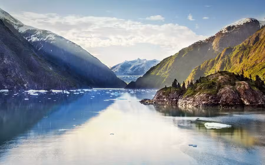 Tracy Arm Fjord extends over 30 miles alongside the wilderness of Tongass National Forest. Sailing through this deep and narrow passage delivers some of the most breathtaking scenery you’ll find in Alaska. See active glaciers carved into 7,000-foot-tall mountain peaks and plunging waterfalls burrowed into evergreen-clad cliffs. Glimpse native wildlife and watch deep blue icebergs float past the ship.
