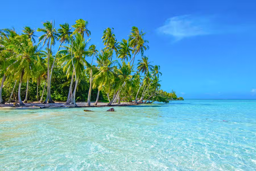 Bora Bora, has long been noted for its stunning beauty. A tiny island, less than 20 miles in circumference, Bora Bora is dominated by the castle-like Mount Otemanu and Mount Pahia, two volcanic peaks with lush tropical slopes. A protective coral reef encloses Bora Bora, and the lagoon is dotted with colorful motus, or islets. Perfect white-sand beaches give way to brilliant turquoise and sapphire-colored waters, and locals in the small village of Viatape sell colorful fabrics, sculptures carved from native wood and precious black pearls.