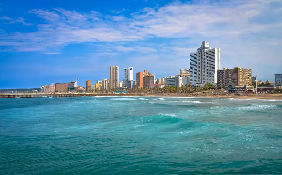 The great natural harbor of Port Natal, on whose shores the city of Durban now stands, was thought by early Portuguese navigators to be a lagoon at the mouth of a large river. They called the harbor Rio de Natal (Christmas River), as its discovery fell on Christmas Day in 1497. The name Durban was acquired in 1843 when Port Natal was renamed for Sir Benjamin D'Urban, the Cape governor who had ordered the British annexation of Natal. Durban became a municipality in 1854 and a city in 1935. Today it is one of the principal cargo ports on the African continent, a center for industry and a major holiday resort. With a population of almost one million people, Durban is a bustling, subtropical city with a warm, more often hot and sultry climate that favors the luxuriant growth of trees and gardens. It is considered to be the Asian capital of South Africa with a massive Indian population. While the downtown area is predominantly Muslim, Hindu Durban lies to the north of the city center. It was here in the Phoenix Park Settlement that Mahatma Gandhi set up his retreat center in 1903, from where moral support was drawn for the Indian demonstrations of 1913. Durban's 21st-century economy can largely be credited to the immense amount of cargo passing through its huge port, as well as to the thousands of Transvaal holiday makers who, since the 1930s, have turned the city's beachfront into a popular playground. Its most dominant landmark is the handsome Grey Street Mosque, the largest of its kind in the Southern Hemisphere.