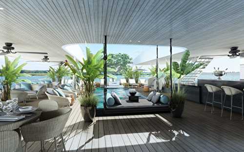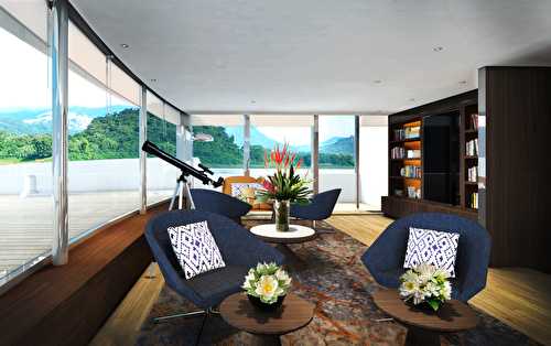 Scenic’s Mekong River cruises take place aboard Scenic Spirit, a 279-foot vessel that was launched in 2016 and can accommodate 68 passengers in 34 one-bedroom balcony suites. The Scenic Spirit, offers an almost 1:1 staff-to-guest ratio and is equipped with a sleek swimming pool, a steam sauna, and an open-air cinema