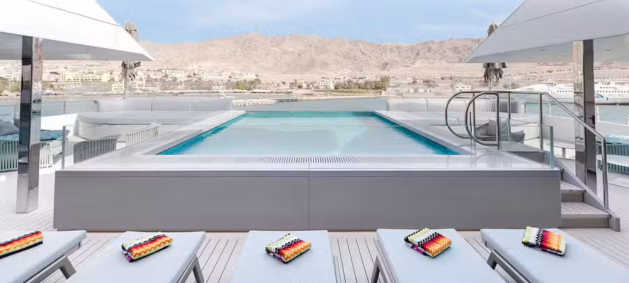 If you’re searching for ultimate relaxation during your cruise, the Elements Spa & Wellness Centre offers just that with a range of spa treatments, a sauna, gym and salon. Head to the Pool Deck and take a dip in the infinity-style Aqua Pool – enjoying views of the glorious destinations your yacht is visiting – or soak in the sun from the cosy Spa Pool on the Sky Deck.