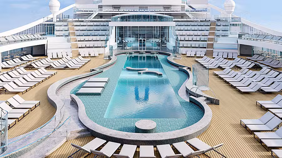 Ground-breaking Design - A striking futuristic silhouette cutting through the water with ease and grace shaped like an arrow with her signature plumb bow and never seen before Y-shaped aft opens onto the impressive 104-metre-long Europa Promenade with breath-taking ocean views. Half open to the sky and half-covered by an imposing LED-sky screen, the screen will feature tailor-made displays throughout the day.